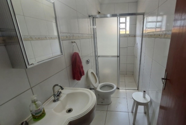 Sala, cozinha, wc social, lavanderia, quarto de despejo, garagem.